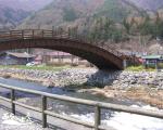 美しい総桧造りの太鼓橋は橋脚を持たない橋としては日本有数の大きさです。