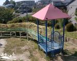 公園の入り口は坂の上にあって、その高低差を利用したすべり台は規模も大きく、長くすべっていられるのでお薦めです。