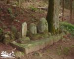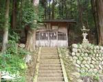 奥には森が広がっていて、石垣が高くつまれた上に境内があります。