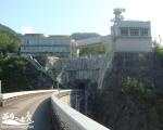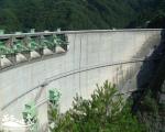 クレスト部にラジアルゲートを5門、コンジット部にローラーゲートを2門備えているアーチ式コンクリートダムです。アーチの構造は、通常1軸で構成されているが、このダムでは3軸で構成されています。